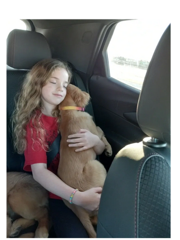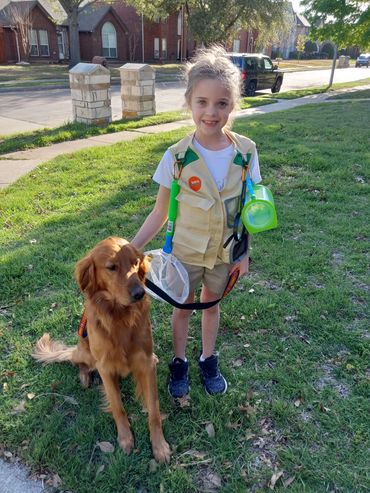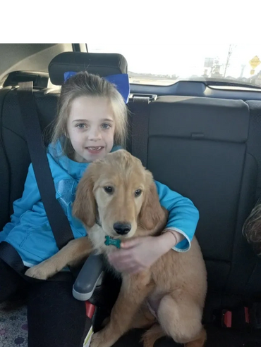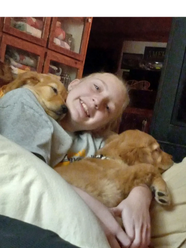 Meet Harper and Hudson with their human Shelbi. Harper is the Red Golden. She met her family by chance and her human fell in love with her at first sight! What a great picture!! Harper wants to be wherever Hudson is, they are the best of friends!
