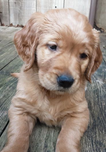 This is Remi. She is a healthy AKC Registered, Golden Girl that is very loving, good-tempered, and a happy active girl. Remi is a good mama to her puppies with each litter. We breed family pets that I hope become as special to your family as Remi is to ours!