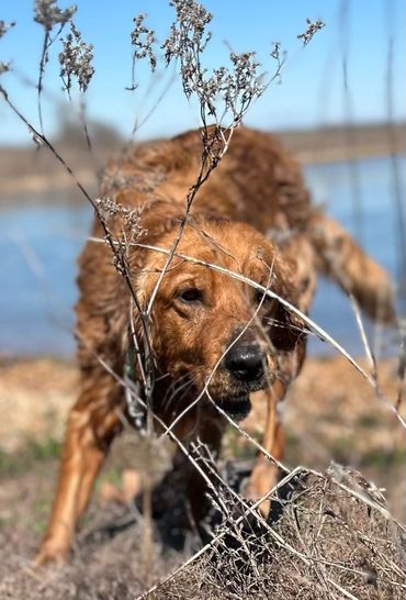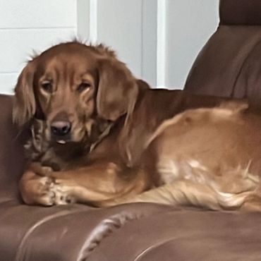 Chief is a pup from Remington's first litter. He is one of the most loving goldens! His humans are his favorite thing! Going on a long hike or run comes in at a close second!!