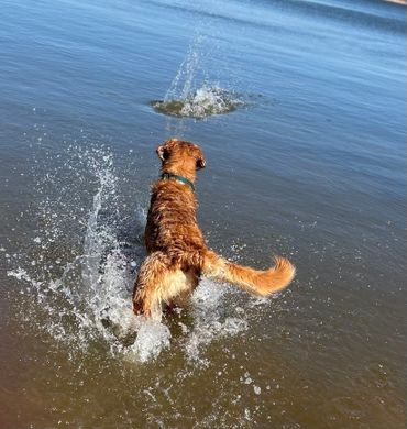 He loves spending time at the lake, splashing in the water, and making new friends!