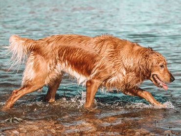 Our Goldens love the water. Getting them use to the water at an early age will be a great form of exercise and help burn off a lot of energy!