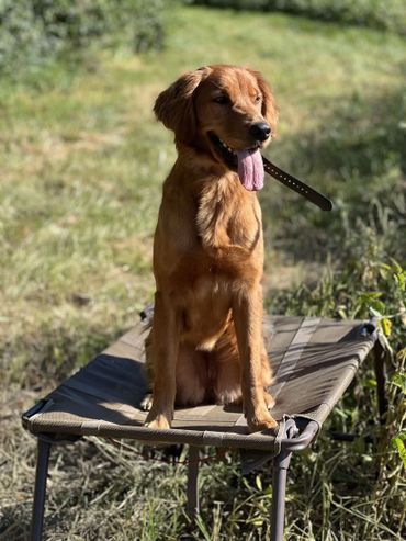 This is Colt! He is a very active and healthy Golden Boy! His favorite things to do are to play in the water at the lake and take road trips with his family! He has quickly become a special part of our family at Trammellot Retrievers.